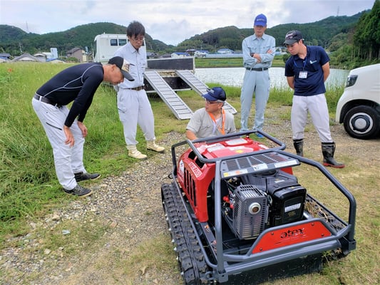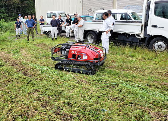 草刈りをラジコンで。ハイブリッドラジコン草刈り機のデモンストレーションに参加してきました。草刈りはエンジンで、走行はモーター、45度の傾斜まで可能で、作業しながら充電できる便利な農機具マシーンが登場です。安全に草刈り作業が出来そうですね。なんぼ(いくら)するんかね?